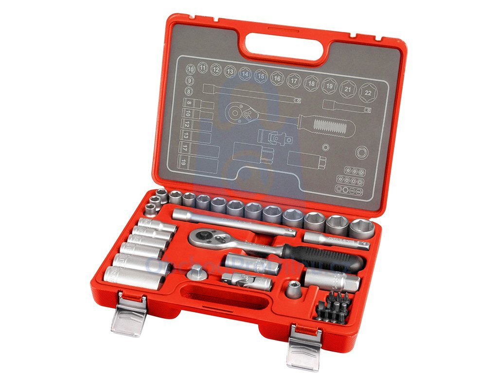 Jednotlivé díly sady jsou vyrobeny z kvalitní CrV oceli a jsou uloženy v červeném plastovém kufříku. Jedná se o základní ruční nářadí, které by nemělo chybět v žádné profi dílně, ani v domácí hobby dílně.