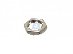 Šestihranná matice z plechu, DIN 7967, nerez A2. Matice je vyrobena je vyrobena z nerezového pružinového plechu s označením A2, tedy nejběžnějšího druhu nerezivzdorné oceli s pružícími vlastnostmi. Na svém vnitřním obvodu má lisované segmenty, které při dotažení šroubu vytváří tlak proti, tedy zabraňují protáčení šroubového spoje a tím jistí šroubový spoj. V těle matice je inkorporovaný metrický závit.