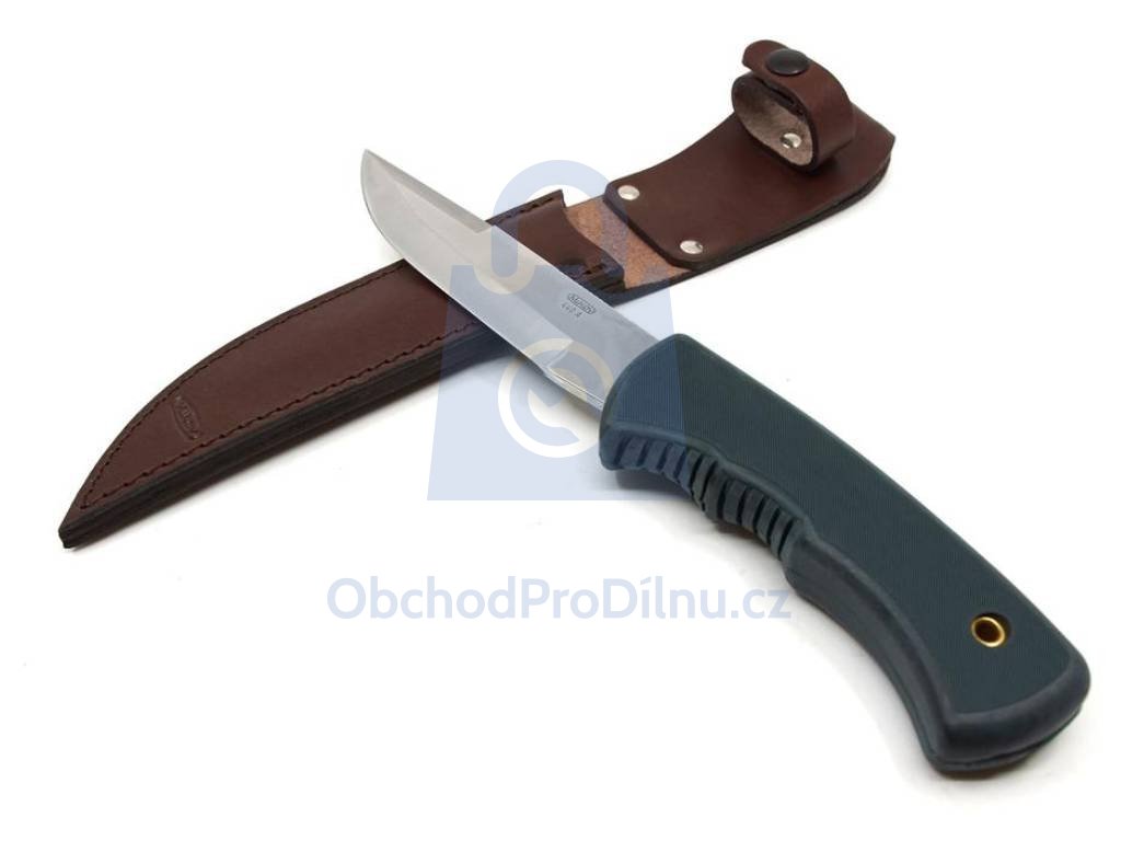 Lovecký nůž VIGIL 394-XG-14 od české nožířské firmy Mikov Mikulášovice je robustní nůž s pevnou čepelí určený pro lovce a outdoorové nadšence, kteří preferují jistý a bezpečný úchop. Čepel je vyrobena z nerezové oceli 440A o tvrdosti 54–57 HRc, což zajišťuje vysokou odolnost a dlouhou životnost ostří. Rukojeť z tvrzené pryže poskytuje pevný úchop i v náročných podmínkách. Nůž je dodáván s koženým pouzdrem pro bezpečné nošení a ochranu čepele.