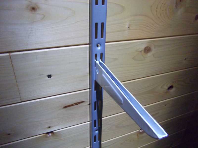 Drážky na upevnění držáku police se v nosné konzole kontinuálně opakují po celé její délce, takže rozestup polic (jejich výšku) si můžete opět přizpůsobit dle rozměrů skladovaných předmětů. Otvory pro kotvení (pro průměr max. 5 mm) se opakují cca po 25 cm.