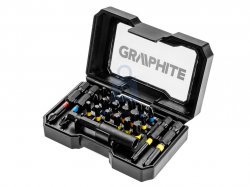 Sada bitů Graphite, sada bitů 23 ks je malá kompaktní sada nástavců výrobce GRAPHITE vyrobena z oceli S2. Zúžené bity ohýbáním omezují sílu dotažení, takže chrání před stržením závitu šroubu.